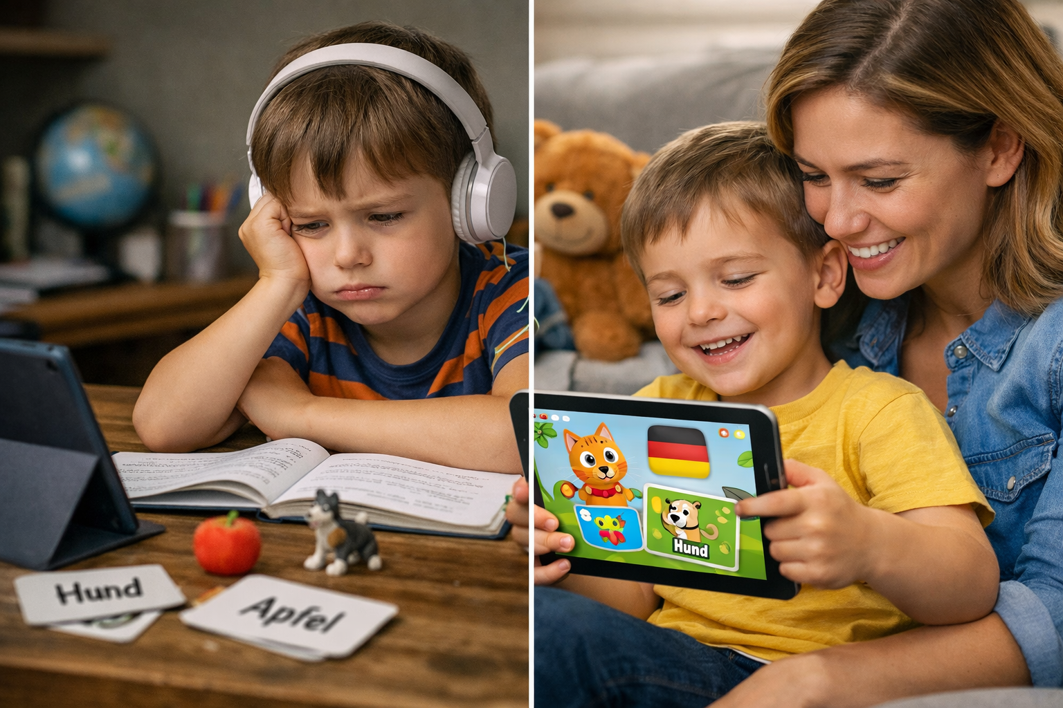 Here’s the problem. In practice, a lot of language learning for young kids still works like a coloring or tracking app: lots of touch prompts, little real speech, — not much power transferred from passive study to actual speaking. Caregivers comparing german vocabulary games for kids ios are often trying to avoid an app that looks busy in the background but leaves pronunciation untouched.